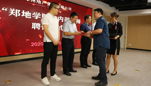9月10日,在我國的第36個教師節(jié)來臨之際,鄭地學(xué)院首屆內(nèi)部講師受聘儀式正式啟動。黨委委員、總經(jīng)理助理馮洪濤、黨委委員張華、特邀評委鄭州商都控股集團(tuán)有限公司董事長牛曉亮及集團(tuán)戰(zhàn)略投資部部長呂延輝出席了本次儀式。