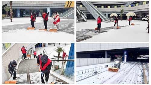 奧體中心迅速啟動(dòng)雨雪應(yīng)急預(yù)案,聚焦核心通道與經(jīng)營區(qū)域,多輪布撒融雪劑、清除積雪、防護(hù)設(shè)施,不間斷開展防墜雪巡查。黨員突擊隊(duì)帶頭沖鋒,對(duì)南北門、東廣場(chǎng)等重點(diǎn)區(qū)域掃雪除冰,全力保障人員與車輛通行安全,確保運(yùn)營平穩(wěn)有序。